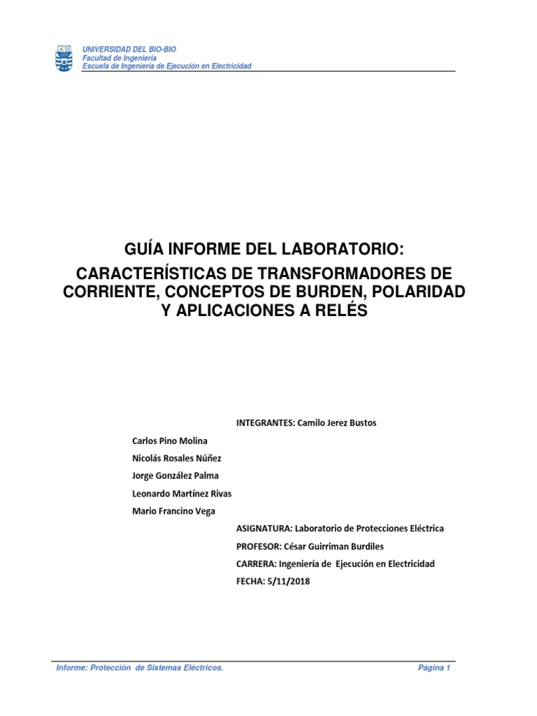 Informe: Protección de Sistemas Eléctricos. Página 1