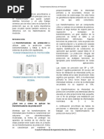 características de 2 tipos de transformadores de corrientes y además un transformador de