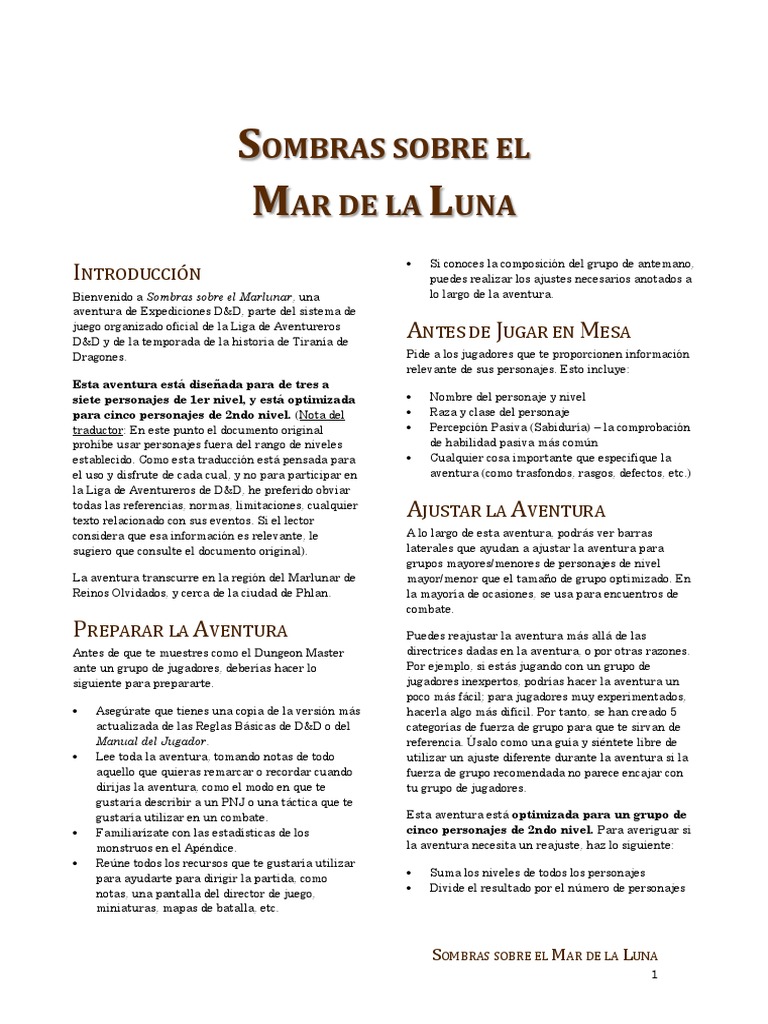 La aventura transcurre en la región del Marlunar de mayor/menor que el tamaño de grupo optimizado. En
