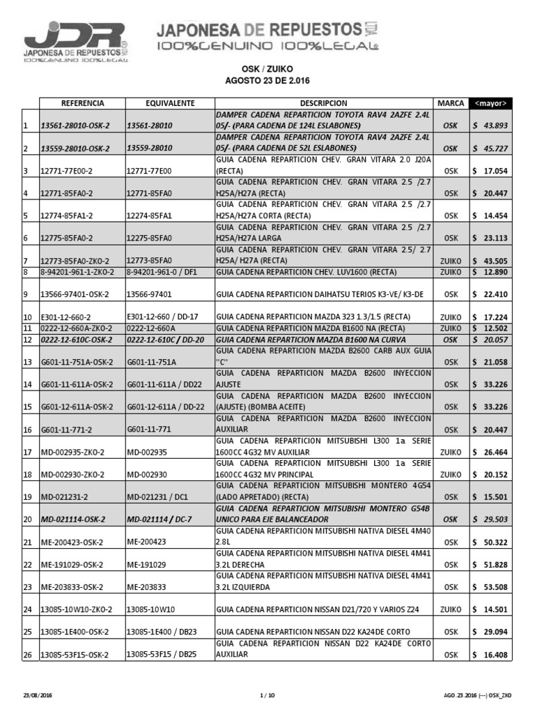 247 13070-10600-ZKO-2 13070-10601/10600 TENSOR CADENA REPARTICION NISSAN PICK UP D720 J18 ZUIKO $ 15.224