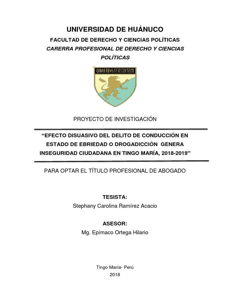 INSEGURIDAD CIUDADANA EN TINGO MARÍA, 2018-2019”