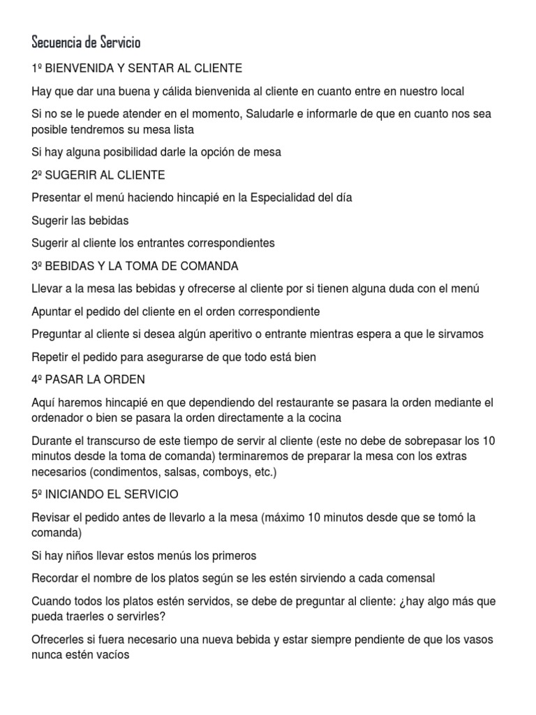 los mejores restaurantes alrededor del mundo. Estas reglas de servicio describen la
