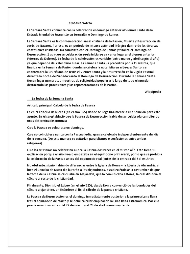 la Semana Santa son Jueves Santo, Viernes Santo, Sábado Santo y Domingo de Resurrección. La