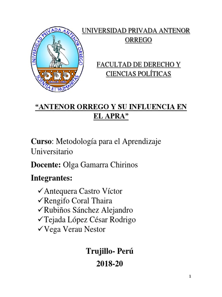 Antenor Orrego es el nombre que lleva nuestra universidad, miembro líder del grupo