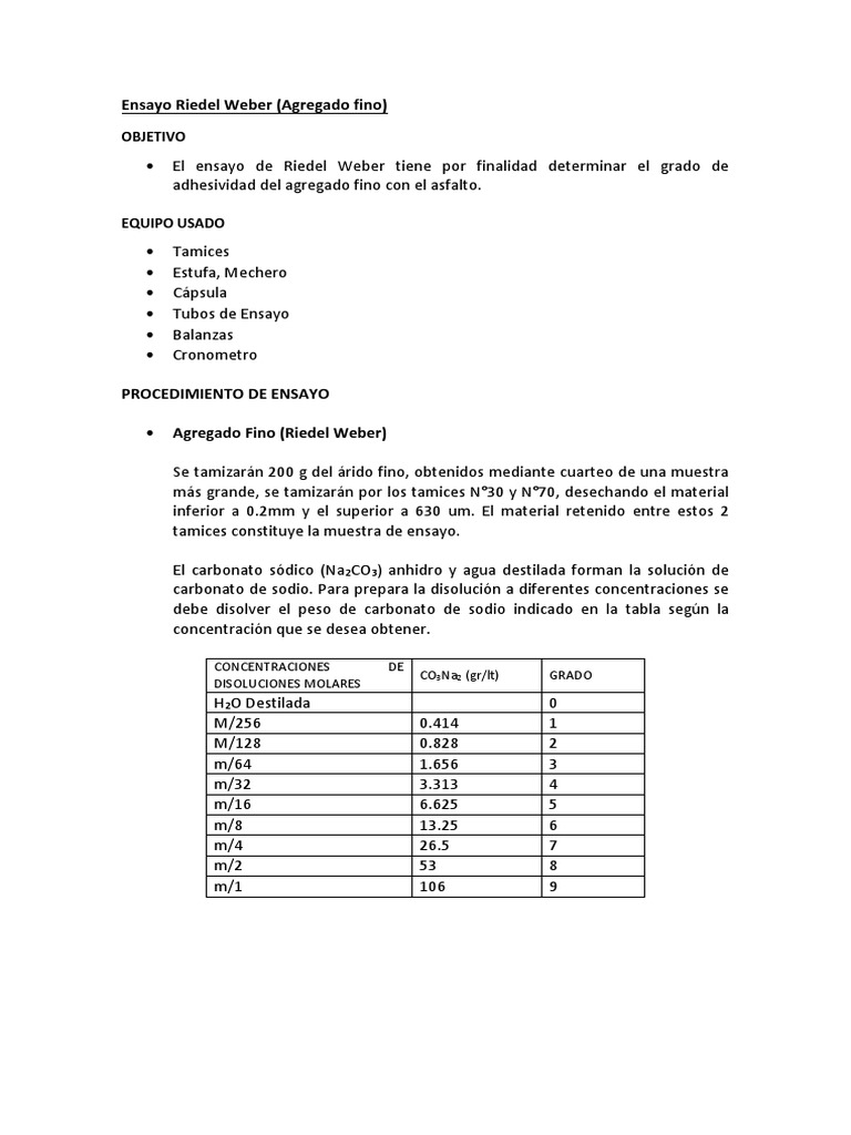 El ensayo de Riedel Weber tiene por finalidad determinar el grado de