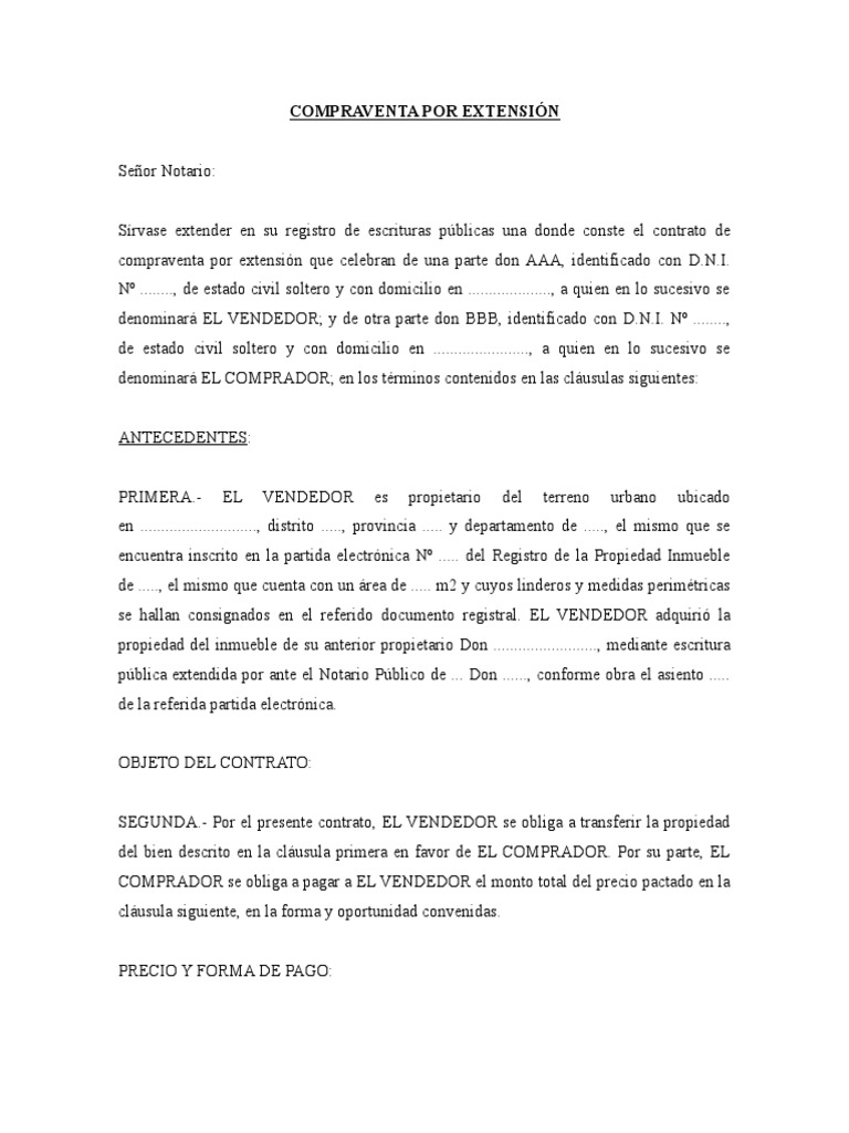 presente contrato de compraventa es por extensión. Consecuentemente en la eventualidad