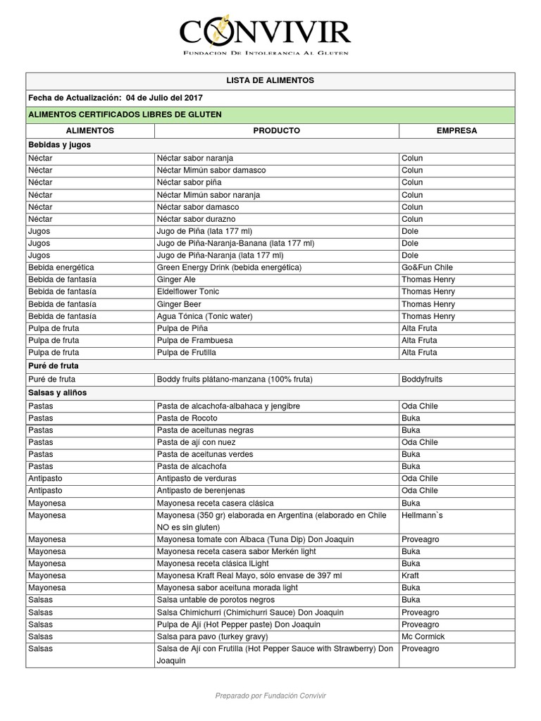 ALIMENTOS CERTIFICADOS LIBRES DE GLUTEN