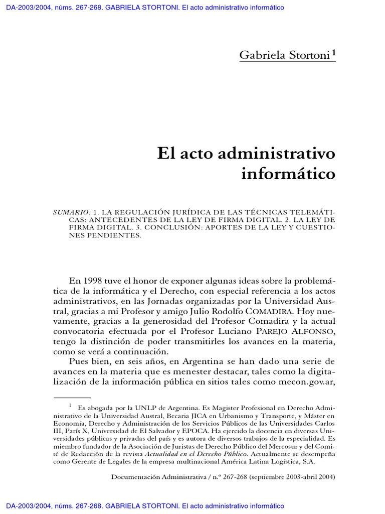DA-2003/2004, núms. 267-268. GABRIELA STORTONI. El acto administrativo informático