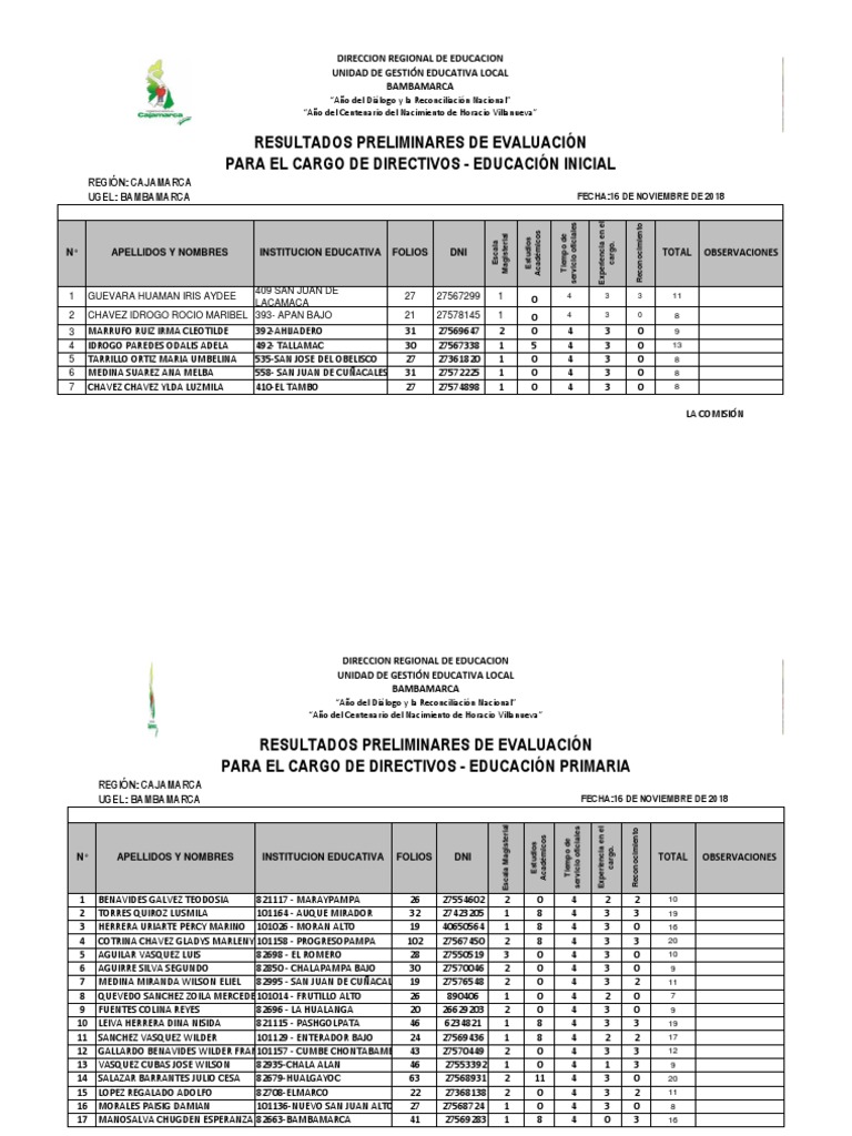 UGEL: BAMBAMARCA FECHA:16 DE NOVIEMBRE DE 2018