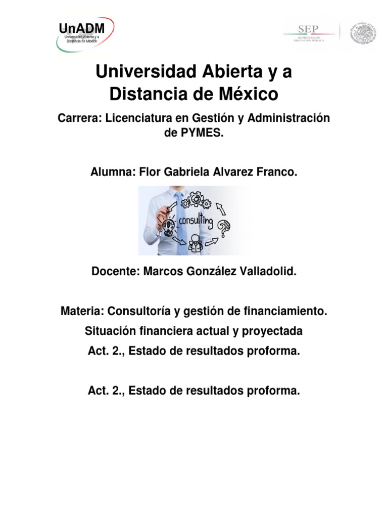 Act. 2., Estado de resultados proforma.
