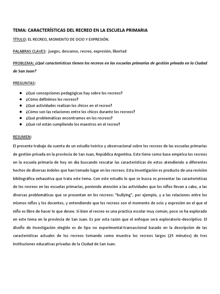 una temática poco indagada en la comunidad educativa sanjuanina. Si bien las características de los recreos ha