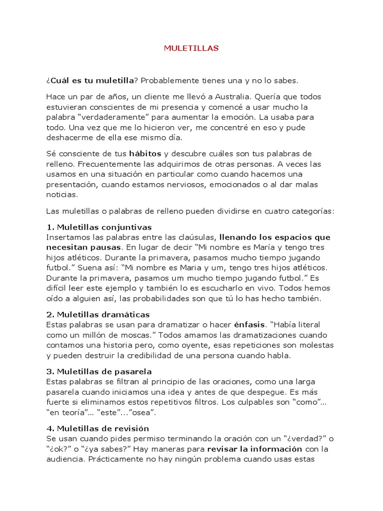 Las muletillas o palabras de relleno pueden dividirse en cuatro categorías: