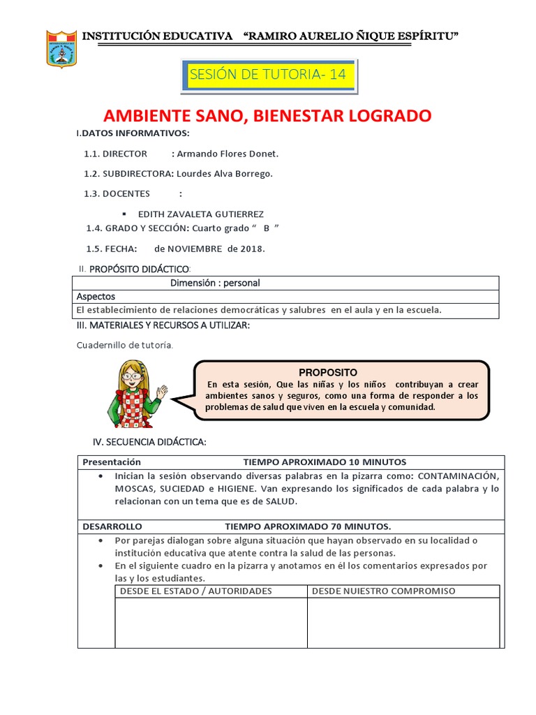1.4. GRADO Y SECCIÓN: Cuarto grado “ B ”