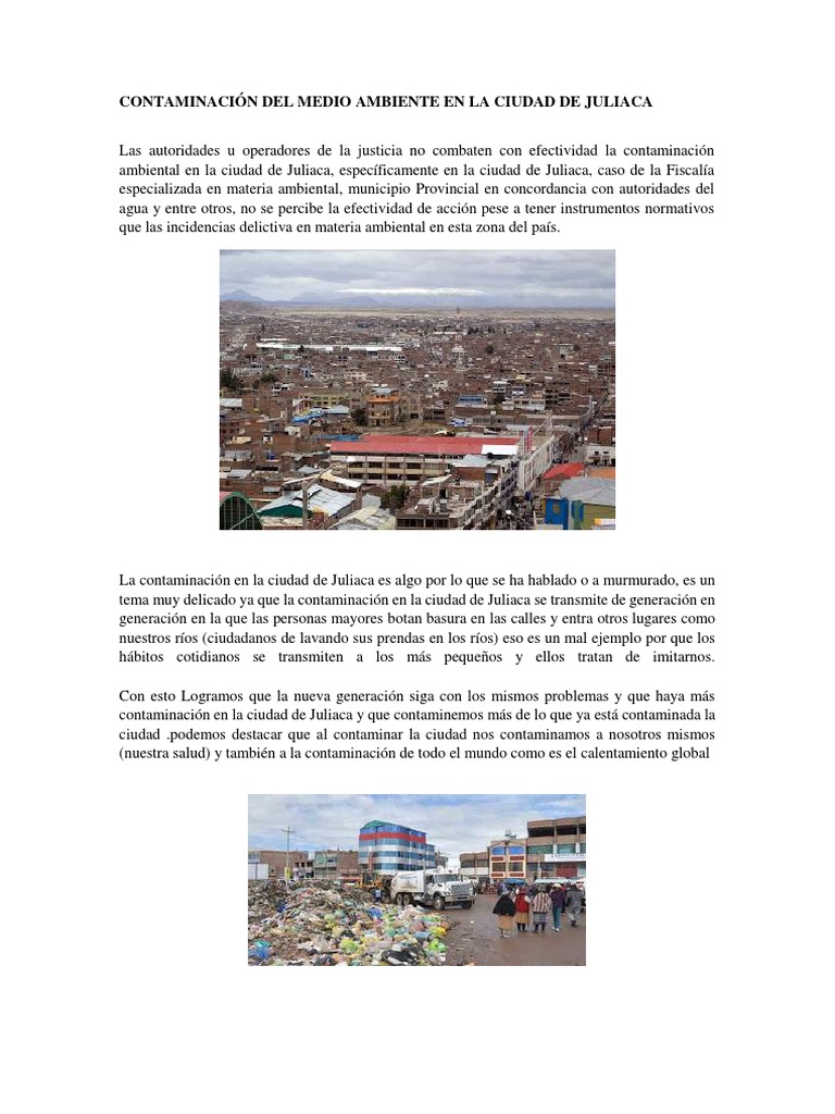 CONTAMINACIÓN DEL MEDIO AMBIENTE EN LA CIUDAD DE JULIACA