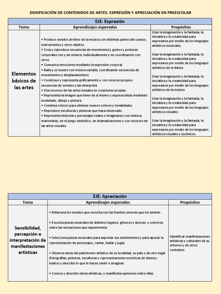 DOSIFICACIÓN DE CONTENIDOS DE ARTES.