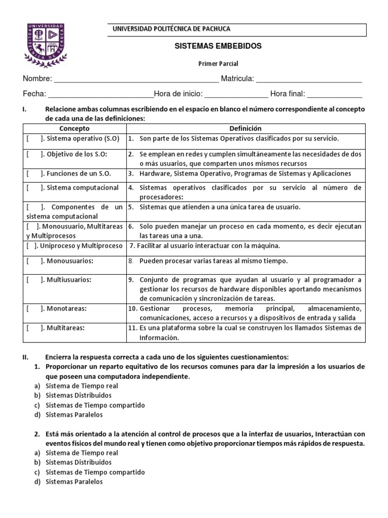 c) Mencione 3 ejemplos de sistemas operativos de tiempo real: ________________________________.