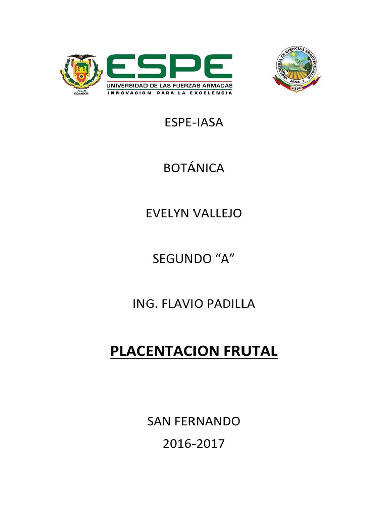 placentación, observamos frutas como: cacao, maracuyá, mango, pera, manzana, piña,