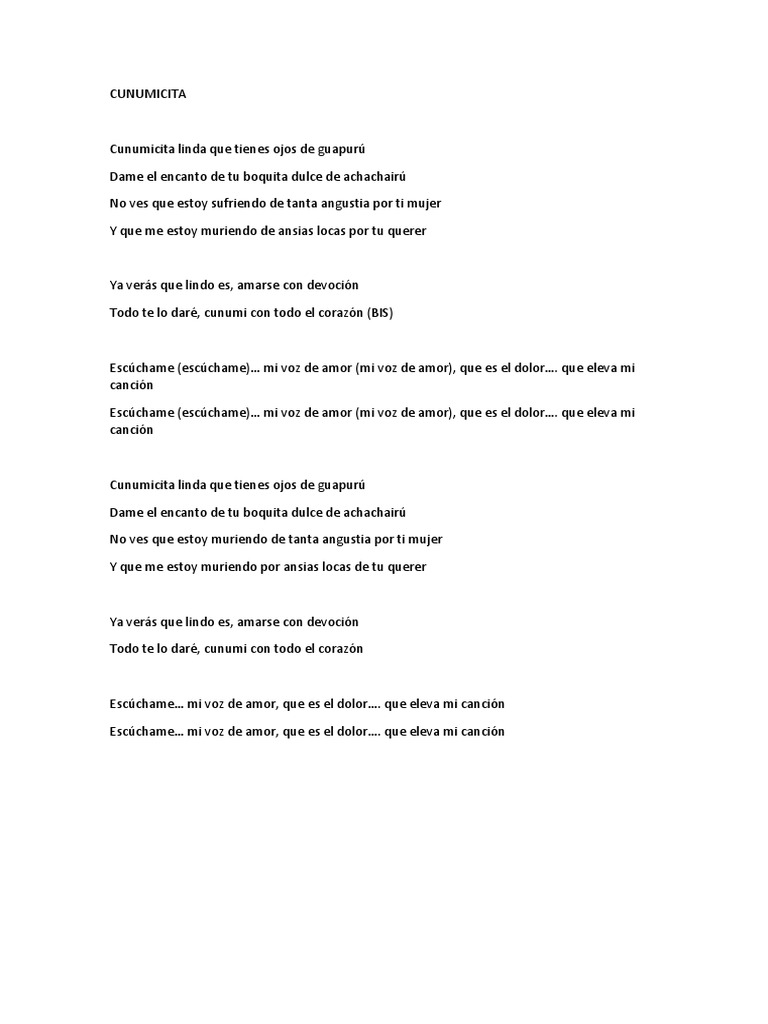 Cunumicita linda que tienes ojos de guapurú