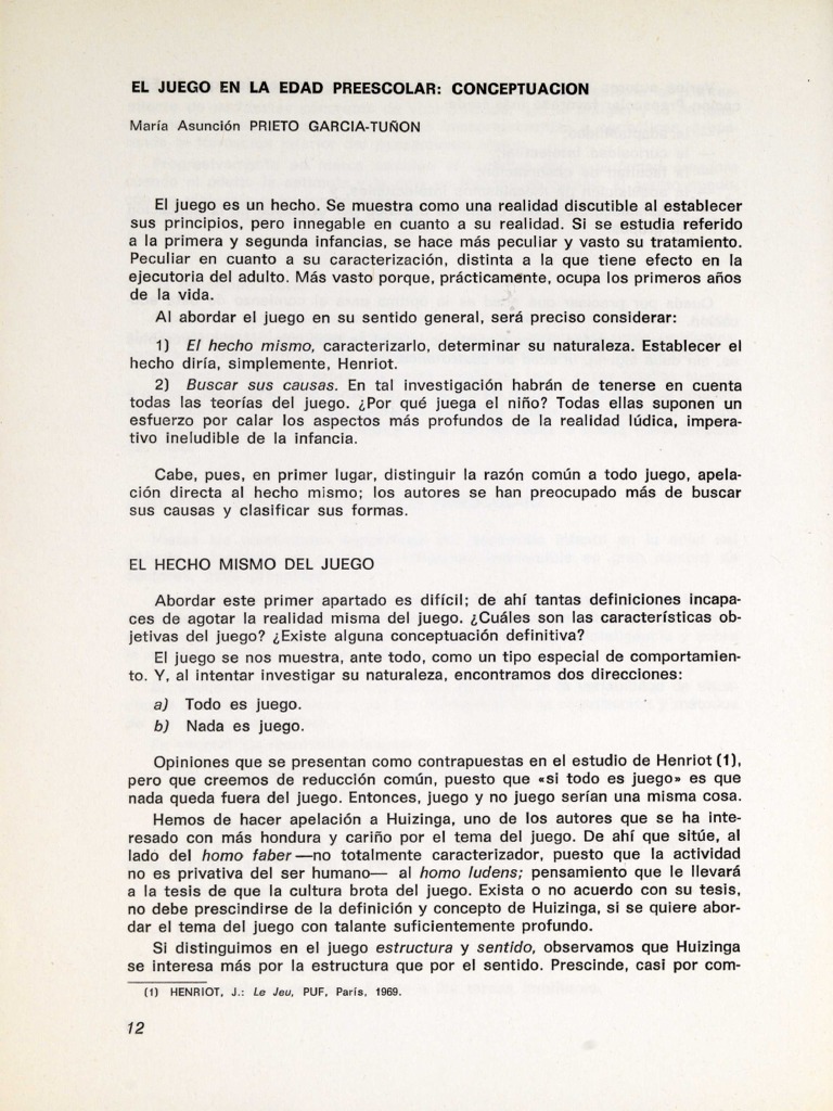 (1) HENRIOT, J.: Le Jeu, PUF, París, 1969.