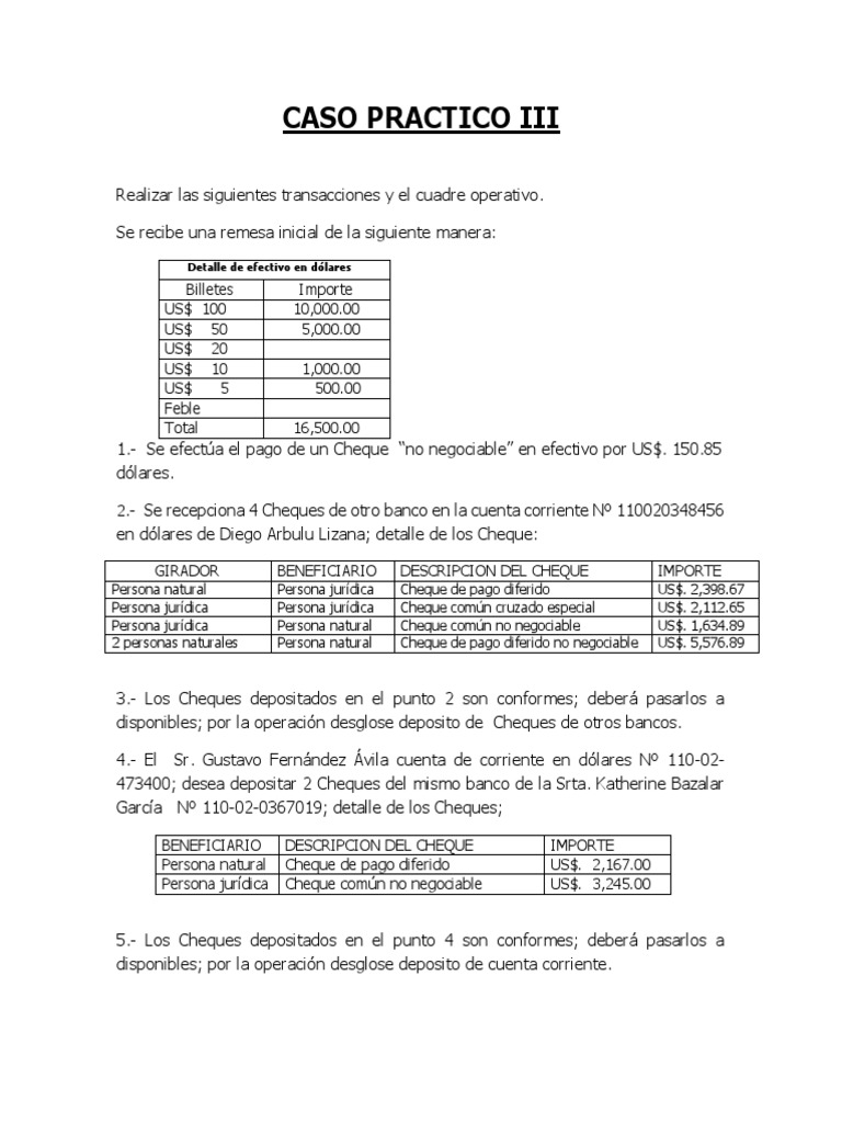 1.- Se efectúa el pago de un Cheque “no negociable” en efectivo por US$. 150.85