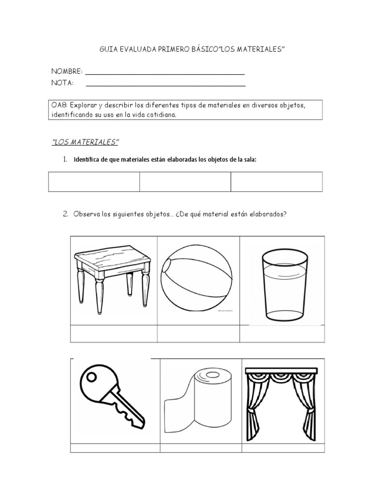 GUIA EVALUADA PRIMERO BÁSICO”LOS MATERIALES”