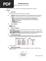 1.- ANTECEDENTE : LA PRESENTE MEMORIA DESCRIPTIVA, SE REALIZA A SOLICITUD