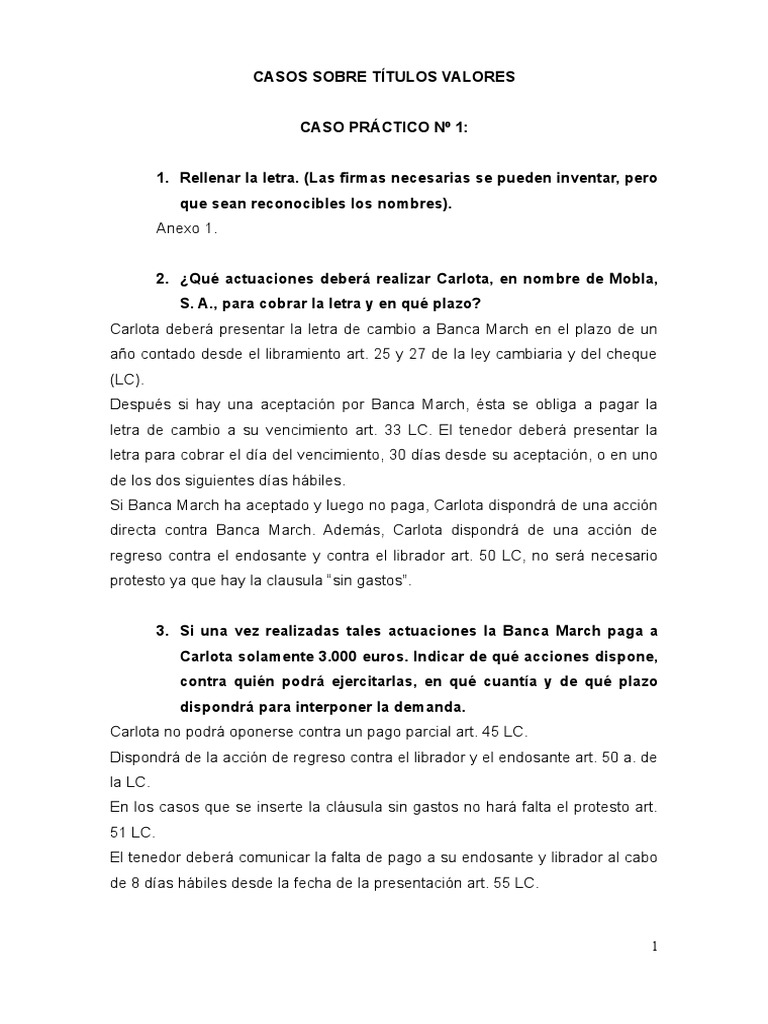 CASOS SOBRE TÍTULOS VALORES