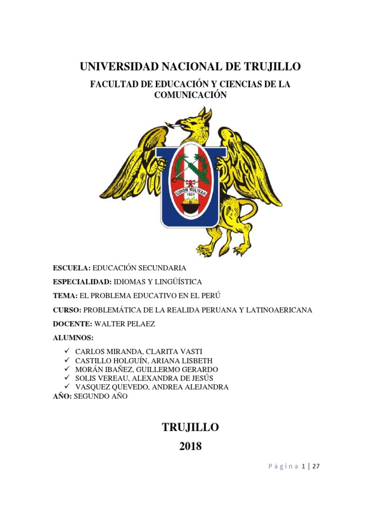 I. SITUACIÓN DE LA EDUCACIÓN ACTUAL EN EL PERÚ