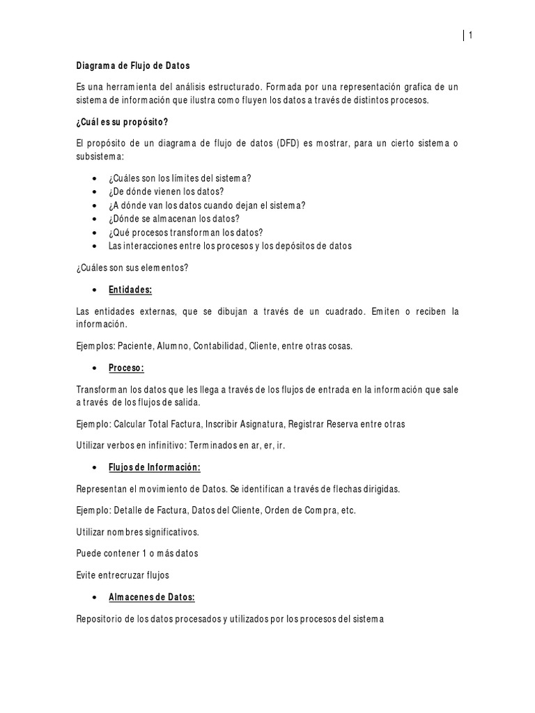 El propósito de un diagrama de flujo de datos (DFD) es mostrar, para un cierto sistema o