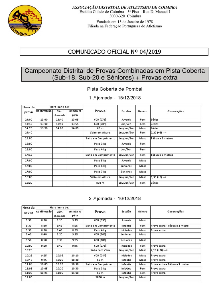 2. O Campeonato Distrital de Provas Combinadas é organizado em parceira com as AARR de Coimbra