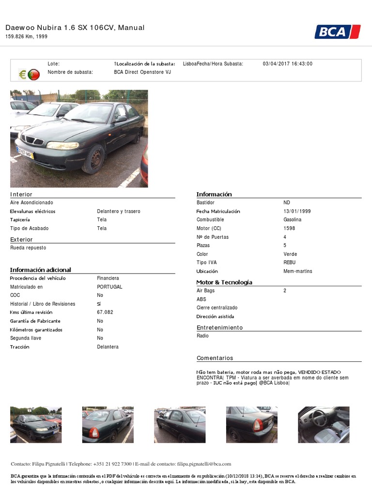 BCA garantiza que la información contenida en el PDF del vehículo es correcta en el momento de su publicación (10/12/2018 13:14), BCA se reserva el derecho a realizar cambios en