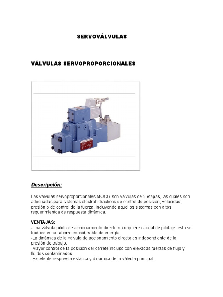 adecuadas para sistemas electrohidráulicos de control de posición, velocidad,