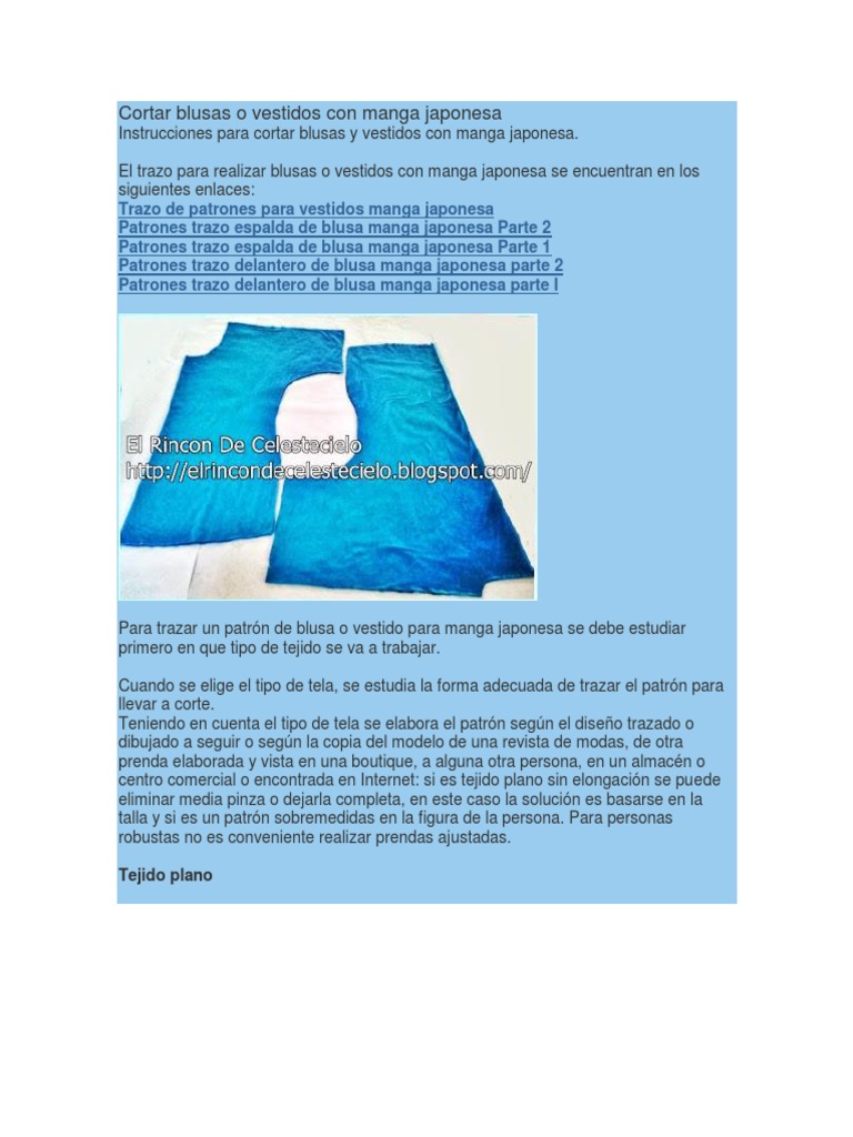 El trazo para realizar blusas o vestidos con manga japonesa se encuentran en los