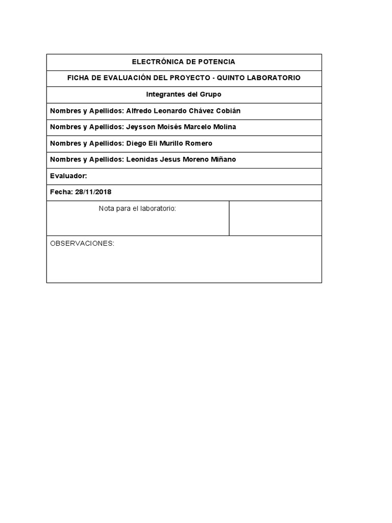 FICHA DE EVALUACIÓN DEL PROYECTO - QUINTO LABORATORIO