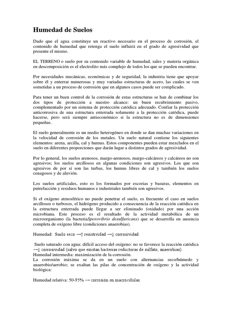 Humedad: Suelo seco →↑ resistividad →↓ corrosividad.