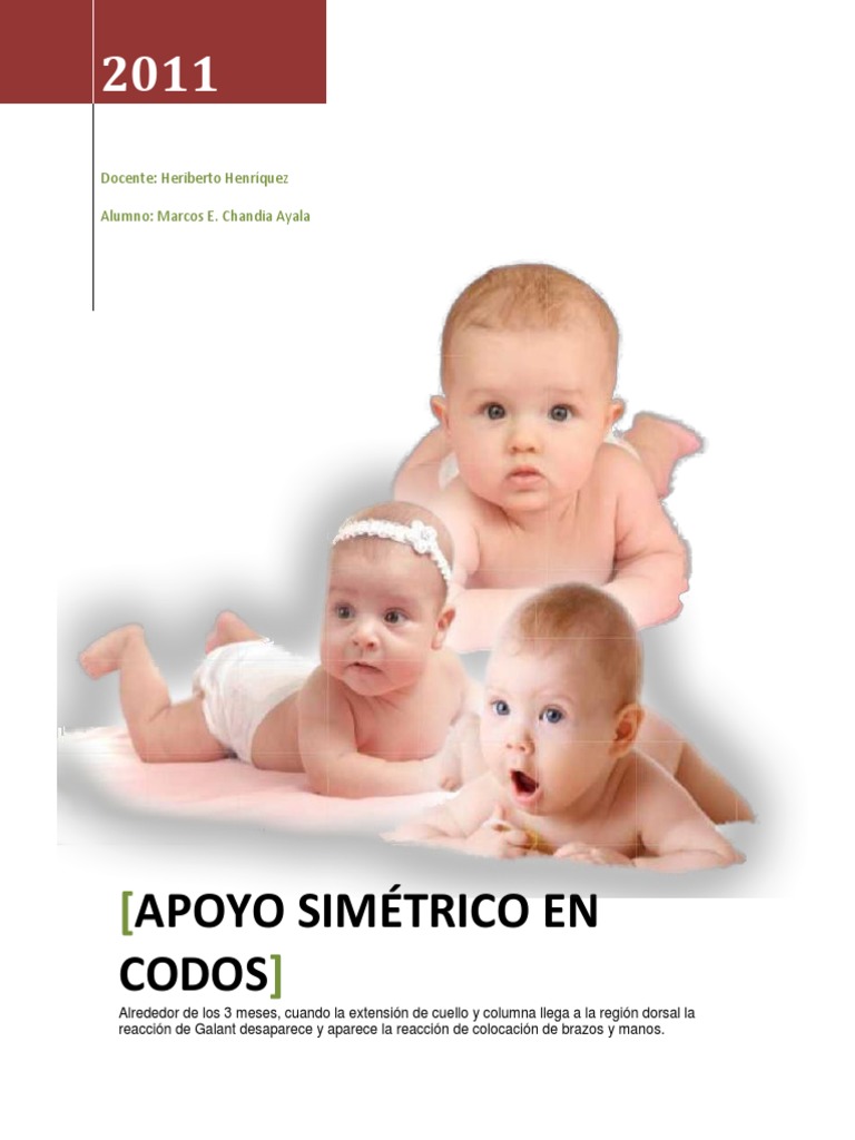 En prono a los 3 meses el niño posee 3 puntos de apoyo siendo el distal: sinfisis pubica y 2
