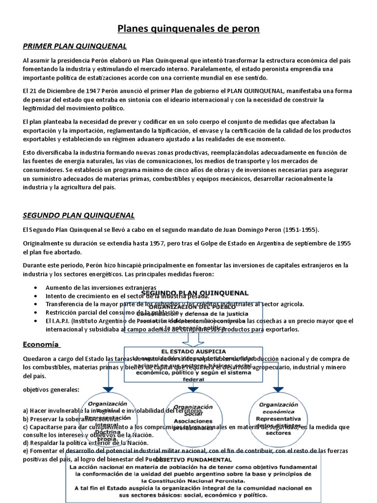Al asumir la presidencia Perón elaboró un Plan Quinquenal que intentó transformar la estructura económica del país