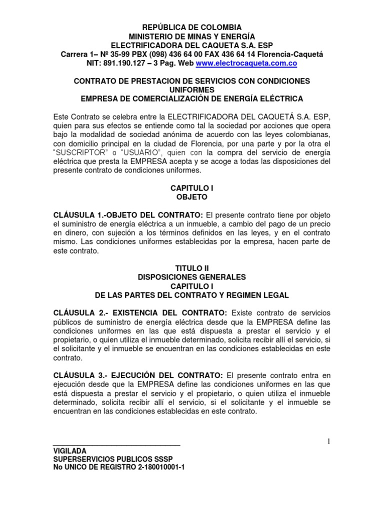 mismo. Las condiciones uniformes establecidas por la empresa, hacen parte de