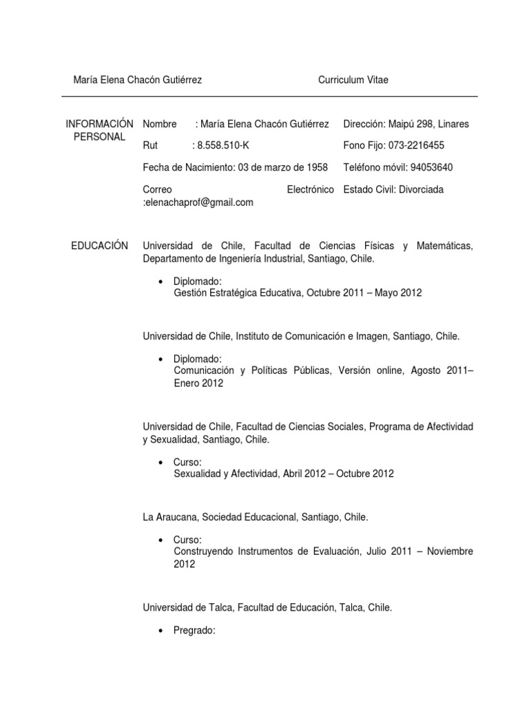 María Elena Chacón Gutiérrez Curriculum Vitae