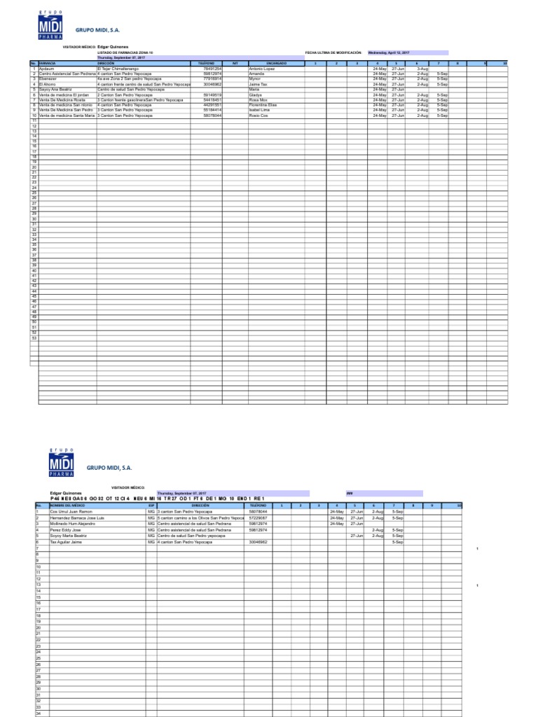 14 Palencia Escobar Felix Danilo MG Ave Ismael Arriaza 7-68 zona 2 Sanarate 79252141 1-Feb 20-Mar 9-May 12-Jun 17-Jul 23-Aug 27-Sep
