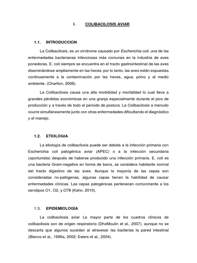 ponedoras. E. coli siempre se encuentra en el tracto gastrointestinal de las aves