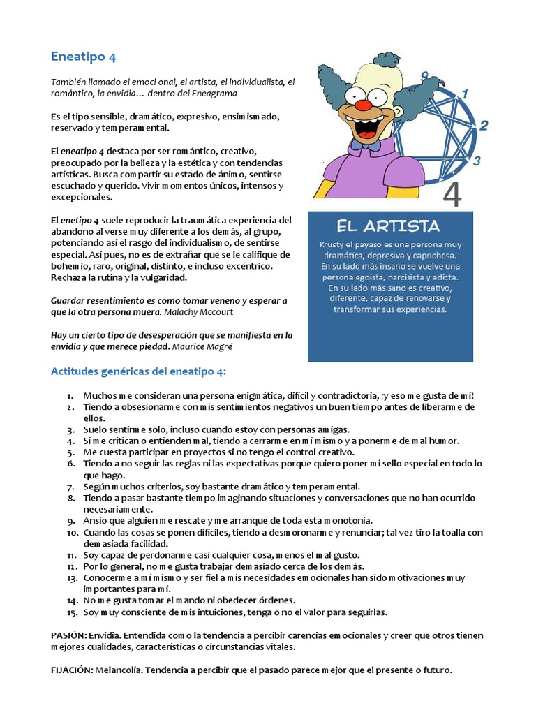 Promedio (lo más habitual). El eneatipo 4 promedio da una