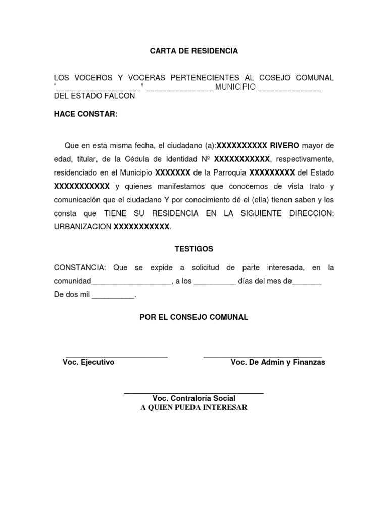 CARTA DE RESIDENCIA