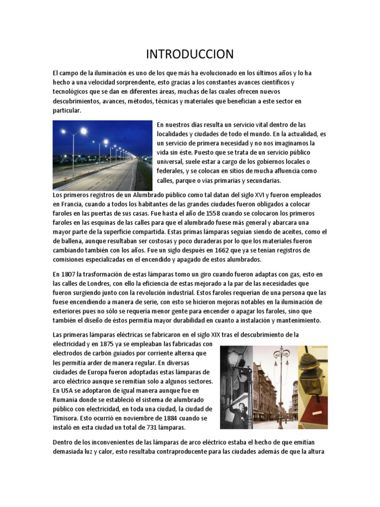 mantenimiento. Para el alumbrado público, ya sea en plazas o carreteras, actualmente se
