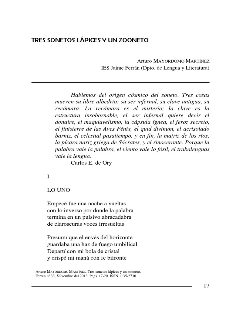 Ferrán 33 (Diciembre 2013) Tres sonetos lápices y un zooneto