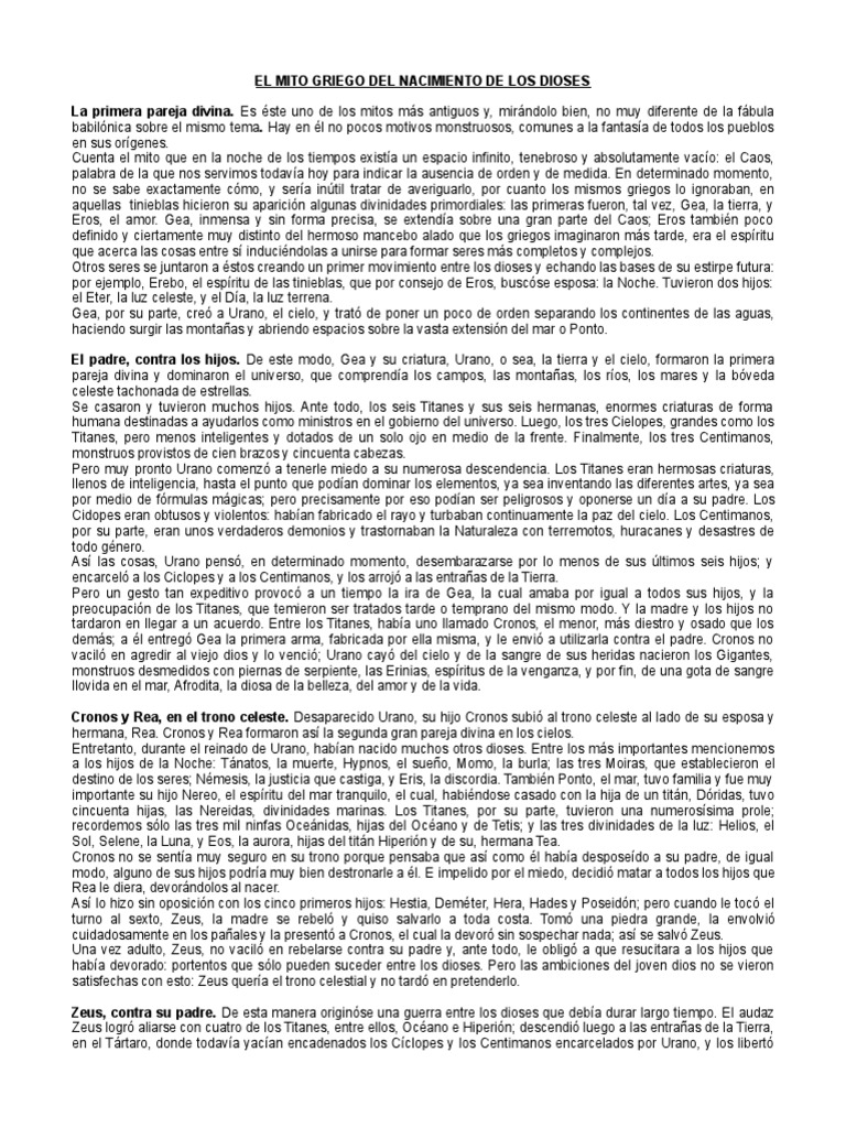 El padre, contra los hijos. De este modo, Gea y su criatura, Urano, o sea, la tierra y el cielo, formaron la primera