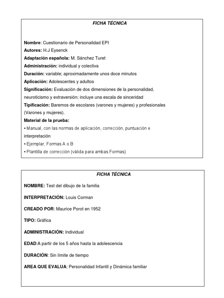 AREA QUE EVALUA: Personalidad Infantil y Dinámica familiar