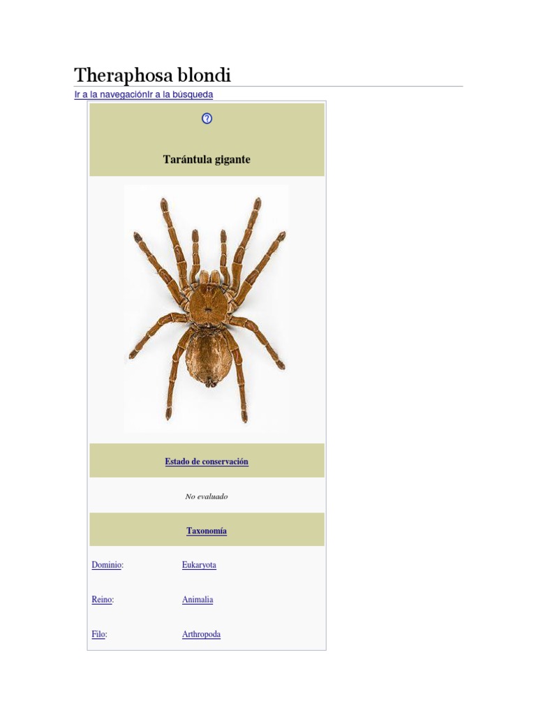 La tarántula gigante, tarántula Goliat o tarántula pajarera (Theraphosa blondi) es