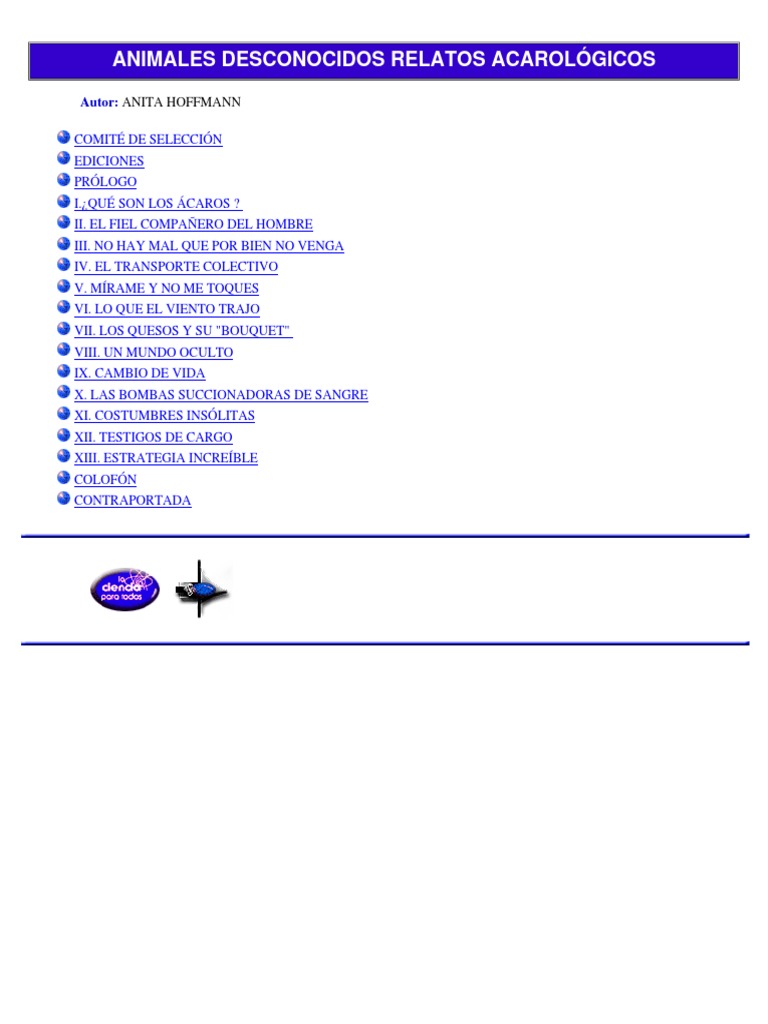 Animales Desconocidos, Relatos Acarológicos