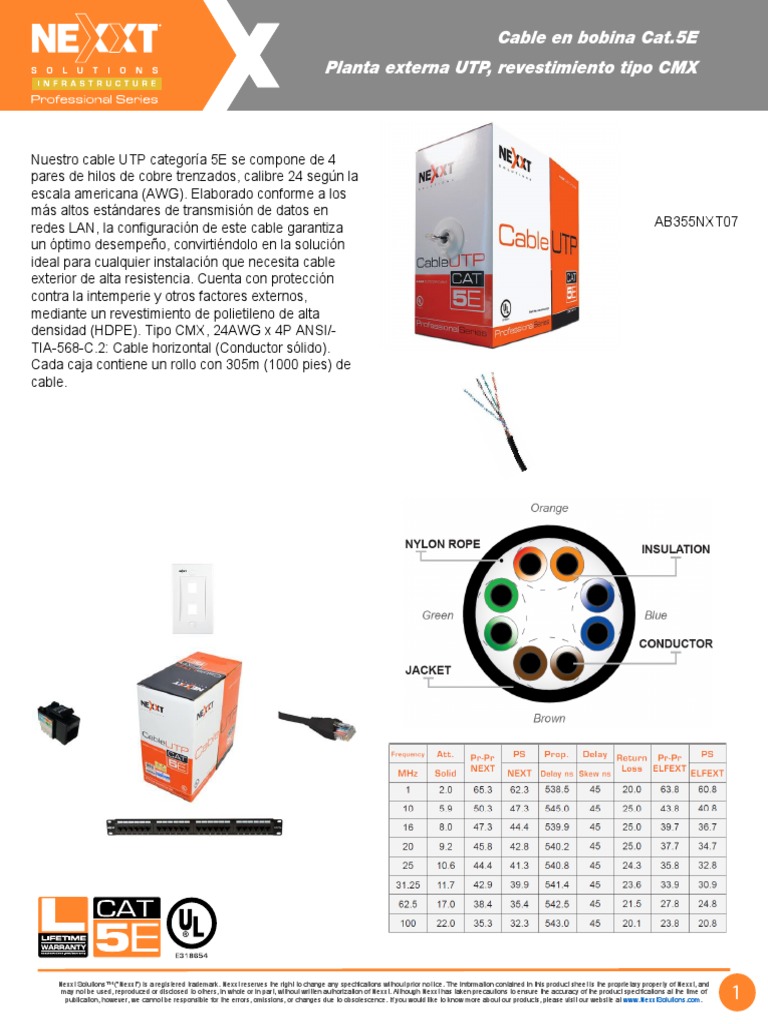 redes LAN, la configuración de este cable garantiza AB355NXT07